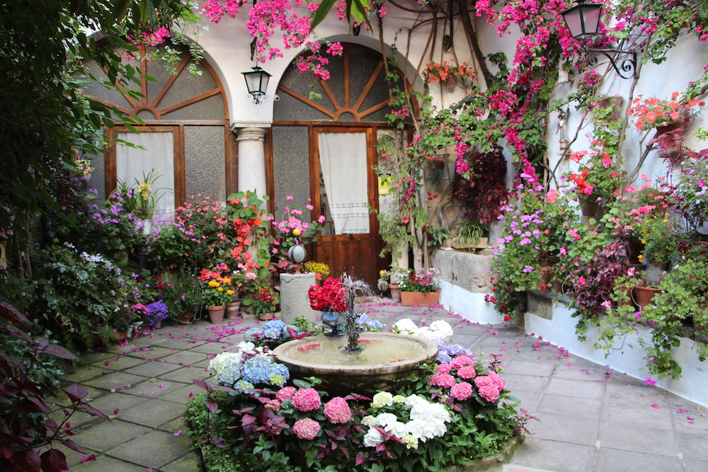 В дни фестиваля жители Кордобы с гордостью открывают для посетителей дворы старого города, которые они старательно украшают по таком случаю горшками герани, гвоздиками и жасмином, свисающими с побеленных стен. Вы можете посетить патио практически в течение всего дня, и, зайдя во двор, вы всегда встретитесь с радушным гостеприимством хозяев и во многих случаях сможете насладиться еще и фламенко и возможностью попробовать вкуснейшие блюда из кордованских тапас и вино Montilla-Moriles.